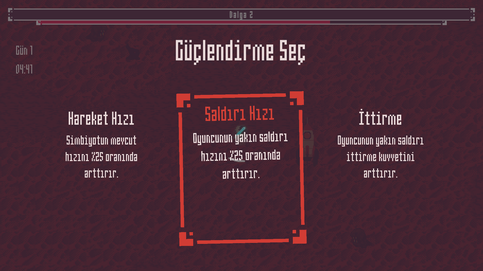 Dalgalar halinde düşmanlar gelirken kendimizi yakın ve uzak dövüş silahlarıyla savunmamız gerek. Ölüm bir son değil fakat parazitik bir bağ demek. Ölünce simbiyot olarak bedeni korumamız gerek. Bedene hasar gelirse simbiyot da ölür. Bir yerden sonra tek, güçlü bir yaratık gelir. Fakat onu da yenseniz yaratıklar gelmeyi bırakmaz. Oyun basit veya tek seferlik güçlendirmelerle gelişir ve ilginç bir hal alır. Yaratıklar gelmeye devam edecek. Sadece kaçınılmazı erteliyosun.